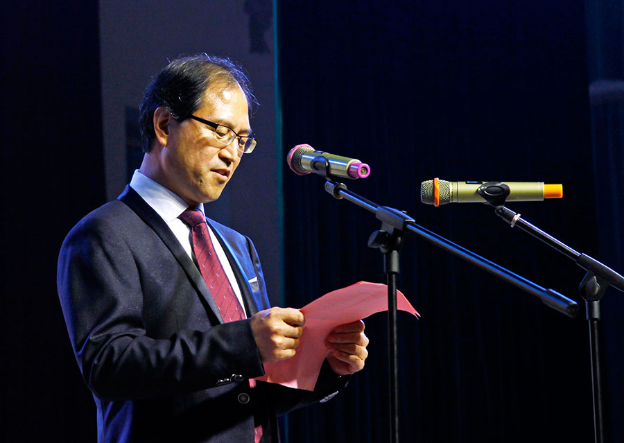 2017年10月24日晚,院团委与学工部在大礼堂举办了2016-2017学年先进表彰暨迎新生文艺晚会,伊逊智、邓新治、张新堂、徐圣月、张琴等学院领导、各部门负责人等出席,学生辅导员、受表彰的学生以及17级全体新生参会。