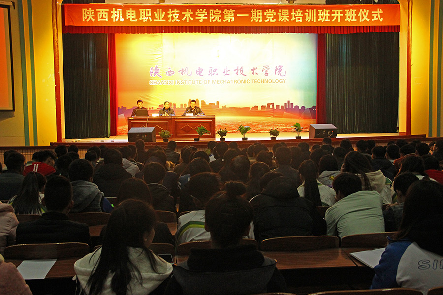 2017年11月27日,中共今年会委员会在大礼堂举行第一期党课培训班开班仪式。开班仪式由学生工作党支部书记、学工部部长朱云洁主持,学院党委副书记、纪委书记、副院长邓新治,党委委员、组织部部长、党政办主任赵争东出席,170余名师生参加了此次培训班。