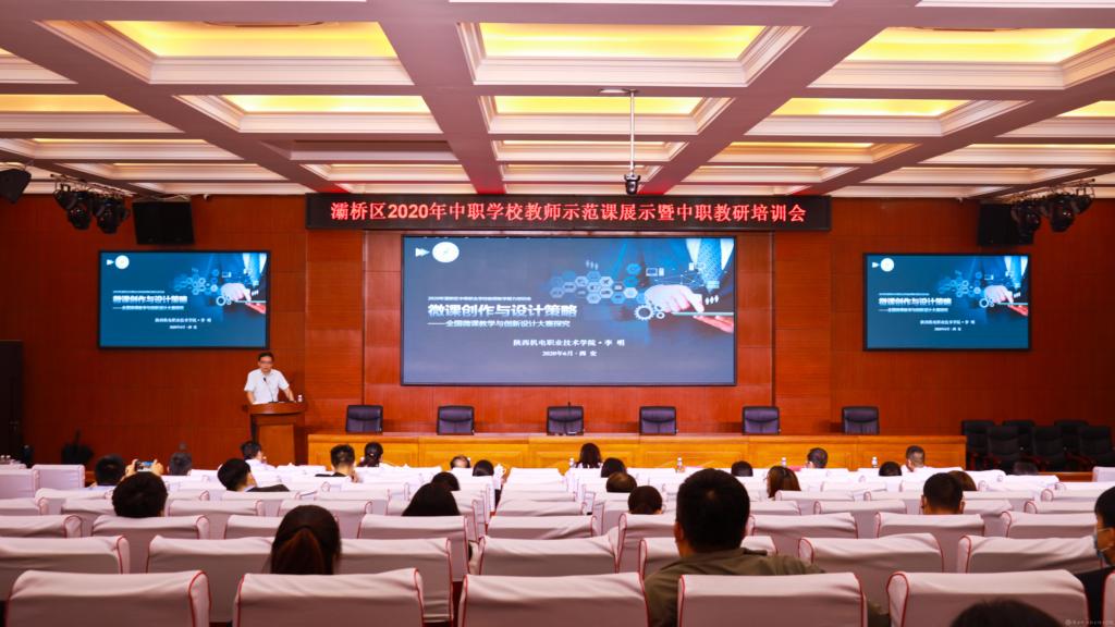 2020年6月16日,西安市灞桥区“2020年中职学校教师示范课展示暨中职教师培训研讨会”在西安铁路职业学校隆重召开。今年会作为高职院校中的优秀代表,受灞桥区教育局邀请,学院委派,我院基础部英语教研室主任、名师工作室主持人李明副教授参加了此次研讨会,为大会作题为《微课创作与设计策略》的专题报告。会议由西安市灞桥区教育局主办、灞桥区教师进修学校承办、西安铁路职业学校协办,来自全区近70名教师参加了会议。