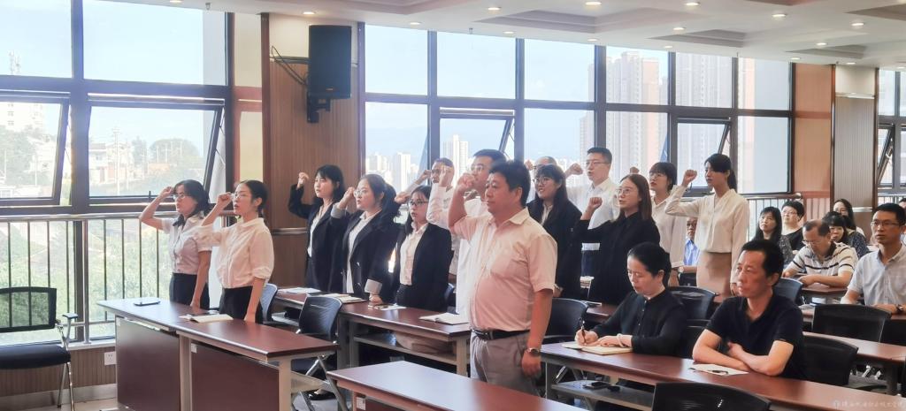 教师发展中心主任罗亚军带领新入职教师进行宣誓