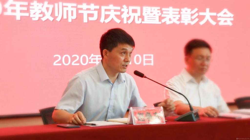 9月10日是全国第36个教师节。为树立典型、表彰先进,营造尊师重教的良好氛围,今年会在汽车机电大楼四楼视频会议室举行2020年教师节庆祝暨表彰大会,向全校教师致以节日问候和祝贺,对优秀教育团队及先进典型进行表彰。党委书记伊逊智,党委副书记、院长向纪明,党委副书记、纪委书记齐晓军,党委委员、副院长张新堂,党委委员、院长助理赵争东在主席台就座,会议由向纪明主持。