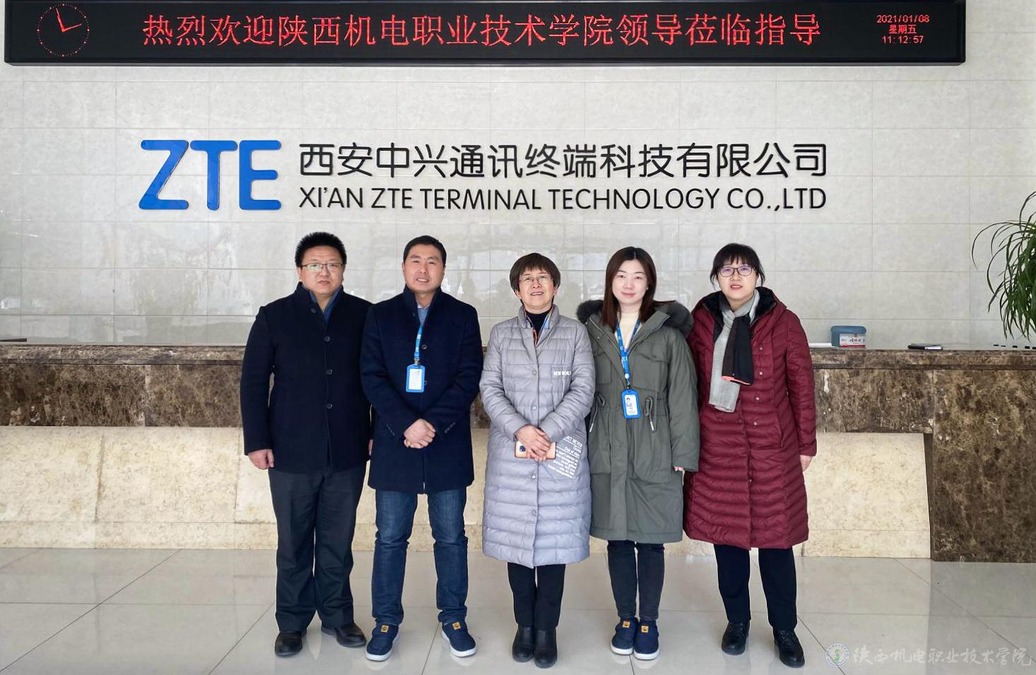 2021年1月8日,今年会副院长徐圣月、招生就业处副处长满春燕、校企合作处副处长田正本等一行赴西安中兴通讯终端科技有限公司进行就业回访及参观考察。中兴通讯西安生产部综合科科长杨峰、中兴通讯人力资源部招聘经理李晗、西安生产部SMT贴片段综合主管刘丹等接待了徐圣月一行。