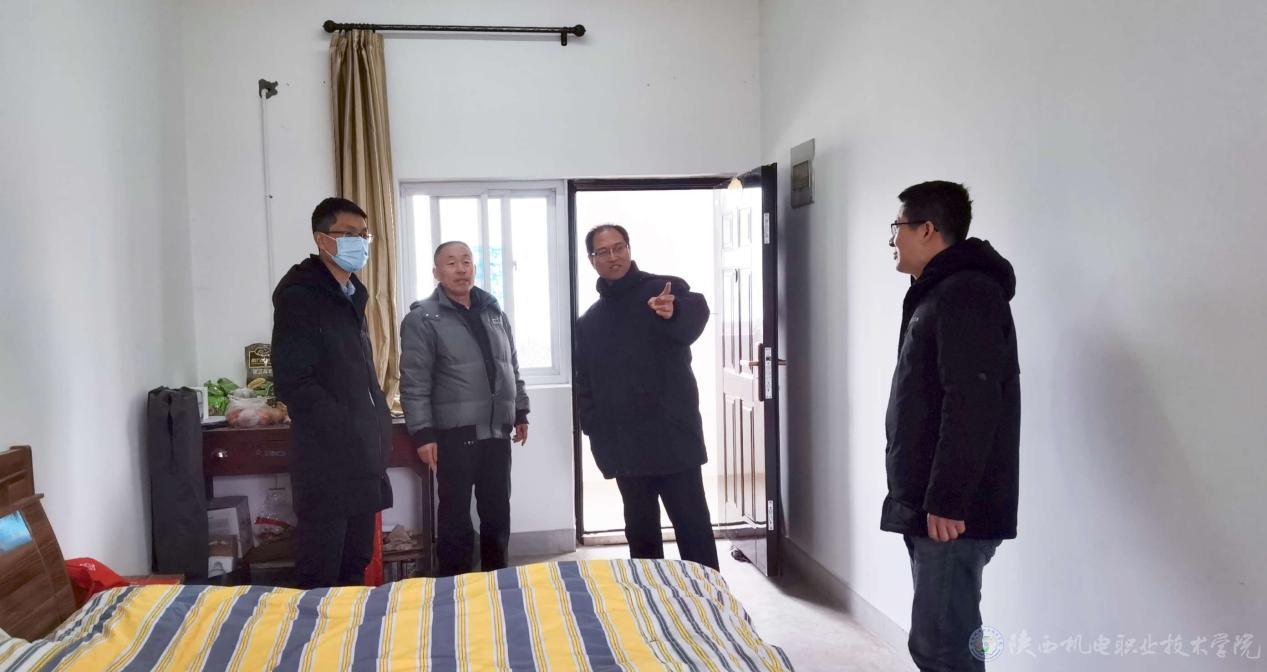随后,调研组实地参观了驻村干部卢彦峰老师的宿舍和办公室,检查督促驻村工作情况,并与卢彦峰进行了详细交谈。深入了解了驻村工作开展情况及当前工作、生活中存在的困难和问题。在听取卢彦峰对脱贫攻坚工作的意见和建议后,伊逊智表示,“澄铭窑村山高路远,生活条件不便利,冬季气温低生活条件差,驻村扶贫工作实属不易,学校几位驻村干部多年来取得的成绩大家也有目共睹,学校对你们的工作表示高度赞赏,但驻村工作仍要继续,继续做好联系服务困难群众工作,真心实意为困难群众办实事、解难题。无论你们在工作中遇到什么困难,全校上下一定会齐心协力帮你们解决。希望你们再接再厉,持续开展好脱贫攻坚各项相关工作。”