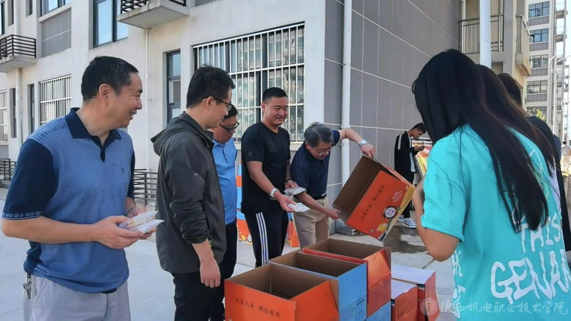 又是一年中秋月,送汝月饼满院香。9月21日上午,党委书记伊逊智、党委副书记邓新治、院长助理赵争东、学生处负责人、各二级学院支部书记及学生科科长等为留校的学生发放月饼,团委老师前往十四运我校志愿者驻地慰问学生,带去学校对莘莘学子的节日问候和祝福。
