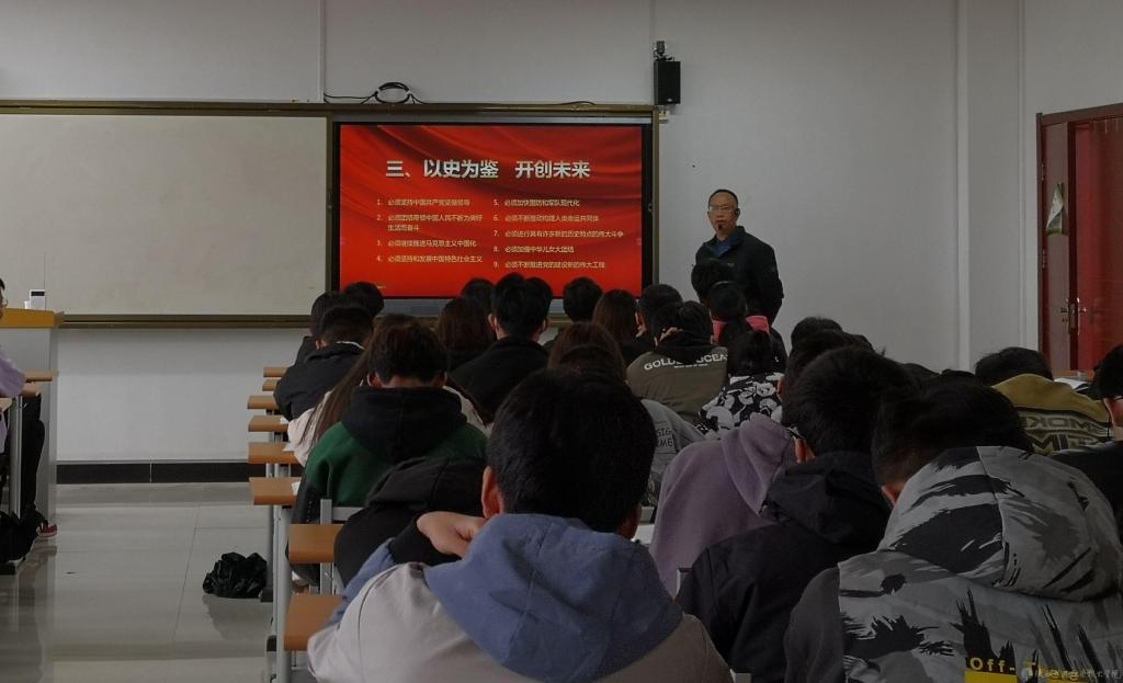 10月20日上午,党委副书记、院长向纪明在博学楼418教室为21现代通信和21云计算合班学生上形势与政策课,讲授《奋斗百年路,启航新征程》专题内容。