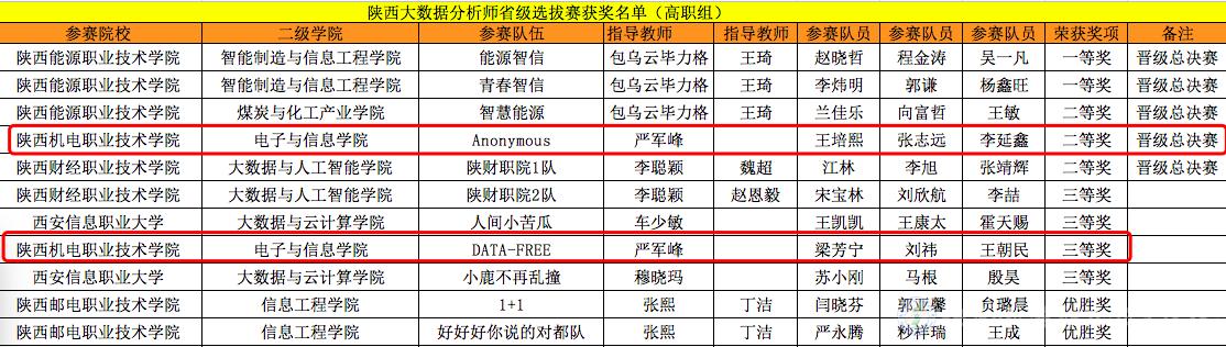 2021年全国电信与互联网行业大数据分析师职业技能竞赛陕西省选拔赛(高职组)中我校学子喜获佳绩