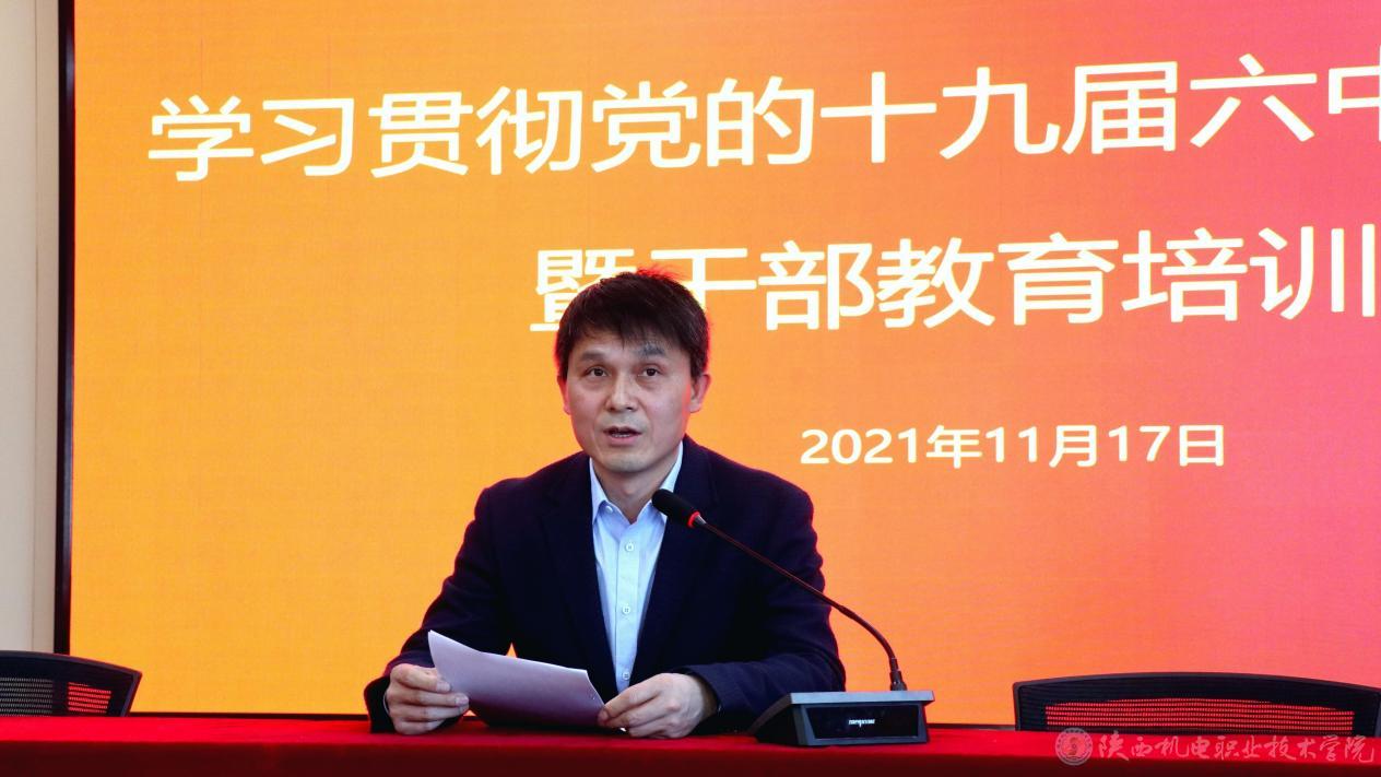 11月17日下午,学校党委组织部在宝福路校区汽车机电大楼四楼视频会议室组织召开学习贯彻党的十九届六中全会精神暨干部教育培训会议,全体校领导、中层干部、科级干部参加会议,会议由党委副书记邓新治主持。