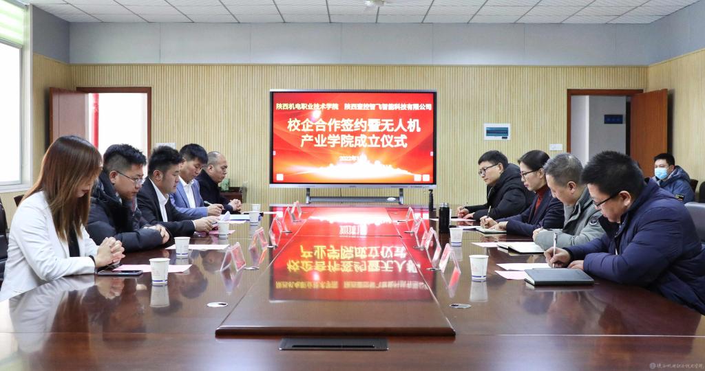 2022年1月14日,今年会与陕西壹控智飞智能科技有限公司校企合作签约暨无人机产业学院成立仪式在我校蟠龙校区图书馆二楼会议室成功举行。出席本次签约仪式的企业代表有陕西壹控智飞智能科技有限公司总经理李海涛、副总经理刘罡、副总经理高启飞、市场总监戴伯涛和行政总监张宏。出席会议的学校代表有党委委员、副校长张琴,汽车工程学院院长李靖,智能制造学院院长马海彦及校企合作处副处长田正本。本次签约仪式由校企合作处副处长田正本主持。
