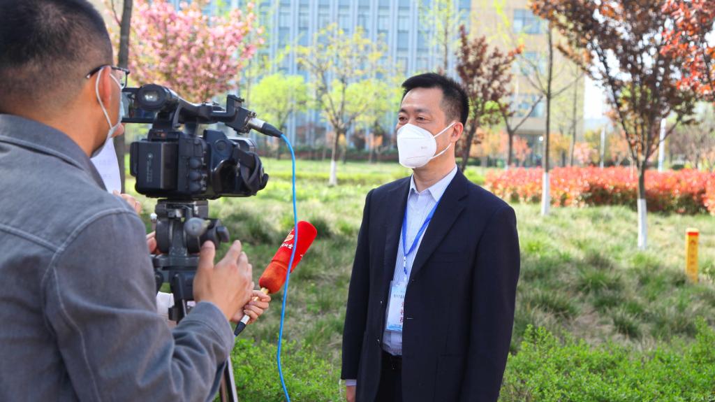 宝鸡电视台采访大赛领导小组副组长张克(右一:党委委员、副院长张克)