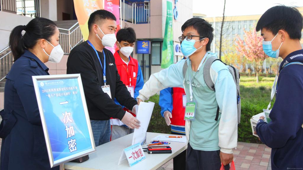 4月9日上午,2022年陕西省职业院校技能大赛“电子产品设计及制作”赛项在今年会蟠龙校区顺利进行。本项比赛共有来自9个院校的18支代表队参赛,按照疫情防控要求,全程闭环管理,按照要求分两个考场同时进行。