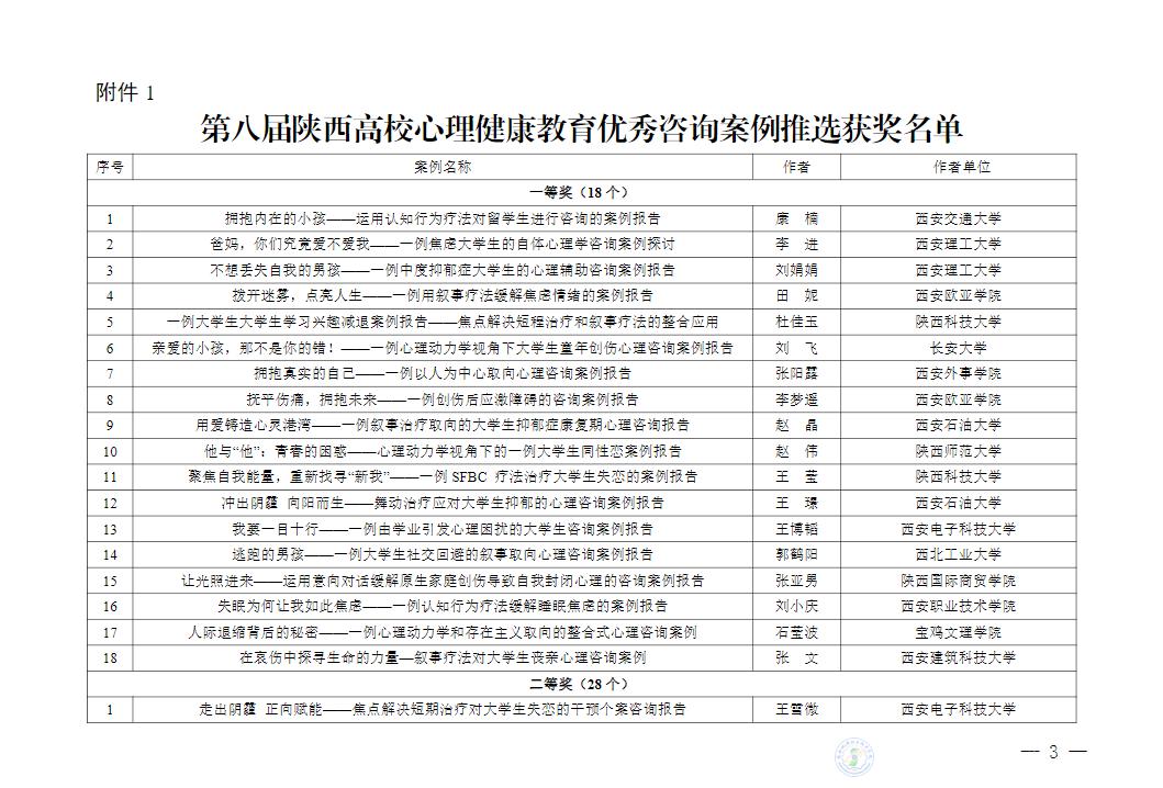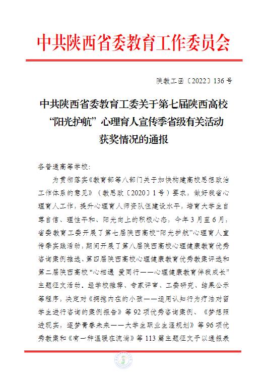 附件1: 第七届陕西高校“阳光护航”心理育人宣传季省级获奖情况通告 原文