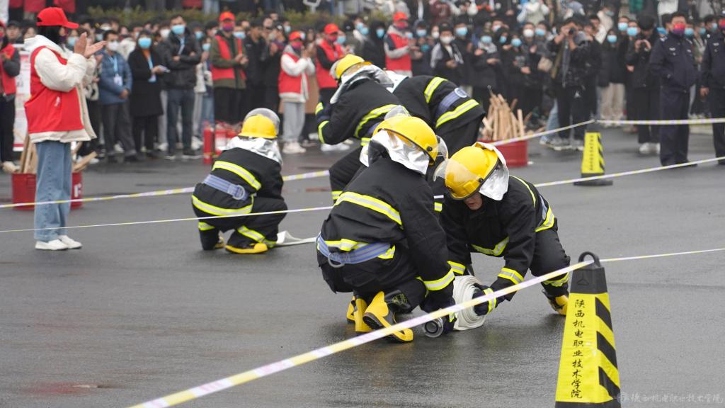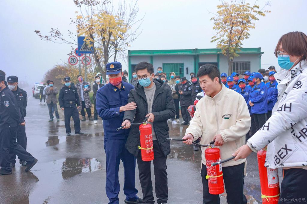 随后有序开展了消防趣味运动会、消防灭火实战演练、消防器材展等互动环节,到场的消防员们在现场言传身教,为同学们展示了不同种类灭火器的使用方法并普及相关消防知识,同学们也在现场手拿灭火器进行实操。使学生们亲身体验了消防员工作的辛苦,同时对消防安全规范有了更进一步的了解。