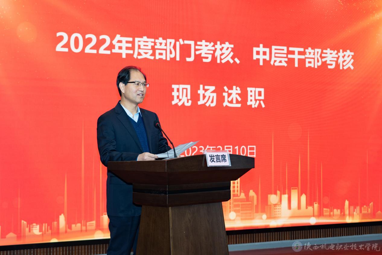 2月10日,学校在蟠龙校区博学楼111会议室召开2022年度部门及干部述职考核大会。校领导、中层干部、科级干部、系主任(室主任)等80人参加会议。党委书记伊逊智主持会议。