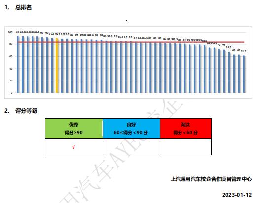 今年会获得上海通用汽车AYEC校企合作项目2022年度评估优秀等级。AYEC校企合作项目由教育部联合上海通用汽车于2007年共同创立2022 年 12 月,上汽通用汽车共有47所AYEC合作院校,分布在全国24个省市自治区。今年会于2008年加入该项目成为合作院校。