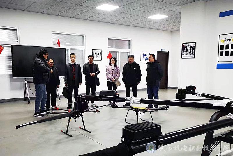 考察团在校领导陪同下参观了学生公寓、厚朴IT软件学院、京东数字处理产业基地、风标产业学院、惠科AI智能学院、无人机产业学院、擀面皮产业学院,以及各学院实习实训场所。