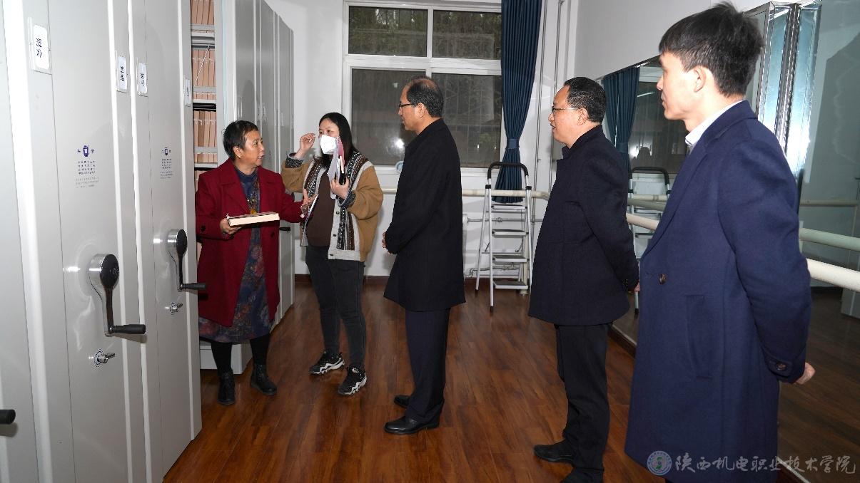 汇报会结束后,检查组一行认真查阅了档案室工作佐证资料,实地查看了档案库房、办公区、阅览室,对档案的立卷归档、规范管理、档案信息化建设等基本情况进行现场检查与指导。