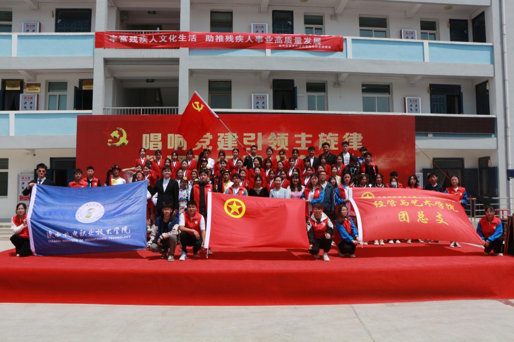 为深入贯彻落实团中央《共青团促进大学生就业行动之大学生社区实践计划工作指引》文件精神,大力探索学校“九维育人”模式之实践育人,4月26日上午,我校大学生社区实践计划揭牌仪式在宝福路东社区党群服务中心举行。活动以“唱响党建引领主旋律 凝聚社区建设向心力”为主题,金台区人大常委会副主任张宝来、金台区民政局副局长王世鹏、金台团区委副书记张丽华、西关街道党工委书记李秋炎、西关街道办公室副主任巨峰、我校经管与艺术学院党支部书记孟发军、校团委书记杨鹏及学生代表、社区群众300余人共同参加揭牌仪式。