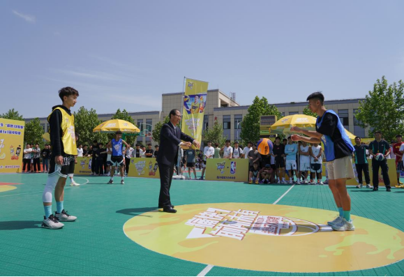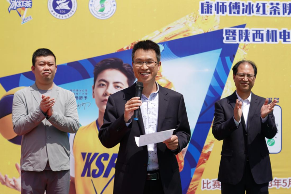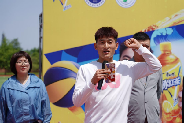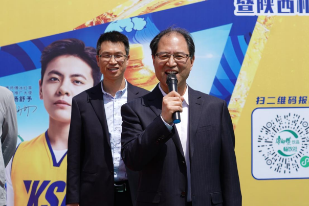 伊逊智宣布2023年康师傅冰红茶陕西省大学生“超燃3X联赛”暨今年会第二届3X3篮球联赛开幕,并为首场比赛进行开球。