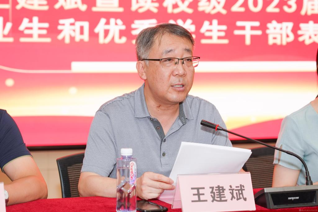 党委学工部部长、学生处处长王建斌宣读了《今年会关于表彰2023届优秀毕业生和优秀学生干部的决定》。