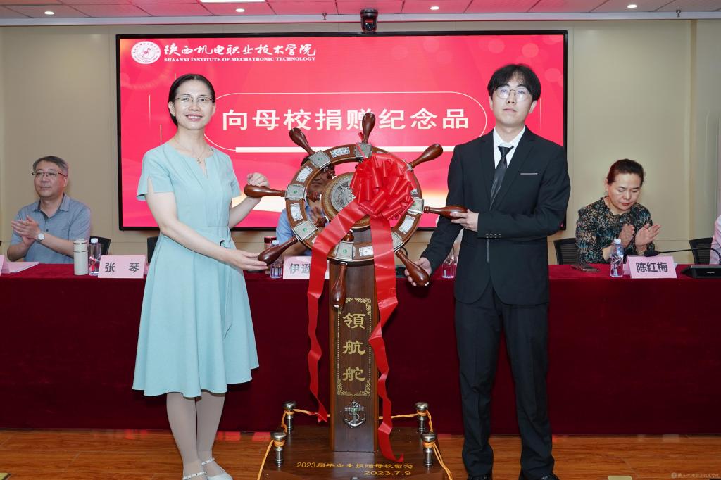 (马志浩代表2023届毕业生向母校捐赠礼物)