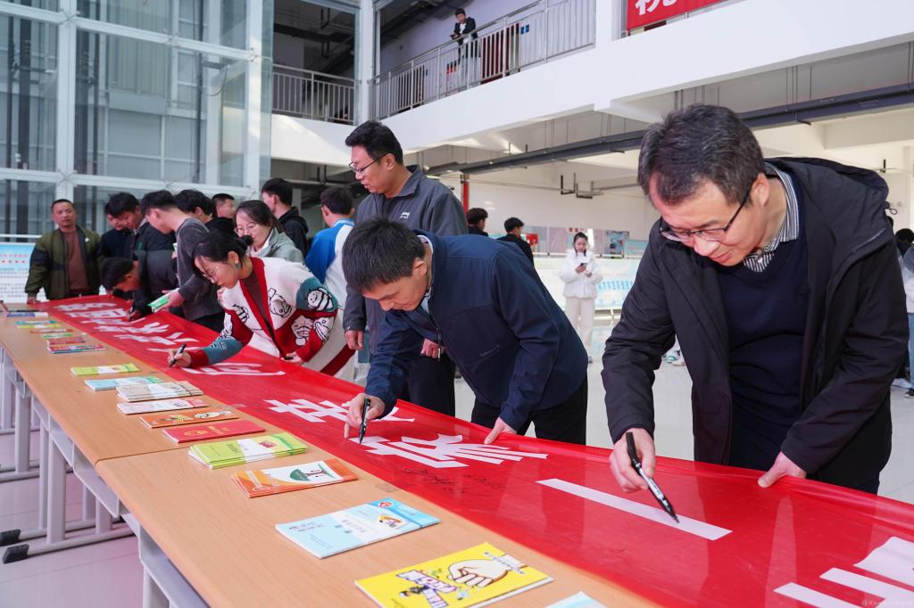 活动中,师生共同在写有“民族团结一家亲 同心共筑中国梦”的横幅上庄重地签下自己的名字。党委统战部、保卫处工作人员通过发放宣传资料、互动交流等方式广泛宣传党的民族政策、法律法规及民族基本知识。