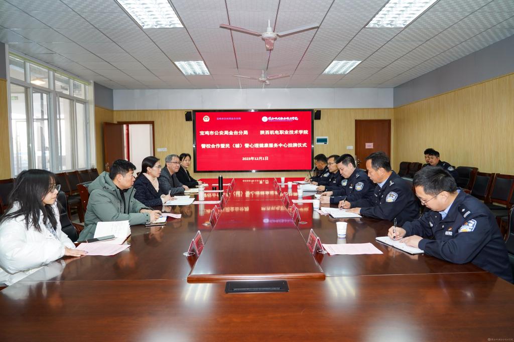 宝鸡市公安局金台分局民(辅)警心理健康服务中心揭牌仪式于12月1日上午在我校蟠龙校区图书馆2楼会议室举行,金台分局副局长陈永亮、政治处主任王军锋、经文保大队大队长党斌、政治处副主任王健超、蟠龙派出所副所长雒文平和我校党委副书记张琴、学生处副处长王枢、心理健康教育中心专职教师参加活动,揭牌仪式由我校党委学工部部长、学生处处长王建斌主持。