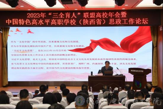 开幕式上,新任“三全育人”联盟理事长、陕西职业技术学院党委书记赵小峰致辞。他指出,在“三全育人”联盟高校共同努力下,陕西省高职院校“三全育人”综合改革从路径探索、内涵发掘到体系构建、标准制定、品牌建设已经日趋成熟,全员、全过程、全方位育人成效显著,校园文化建设硕果累累。当前全国上下正在深入学习贯彻习近平文化思想,“三全育人”联盟应以新思想引领新发展,以新作为担当新使命,推进陕西省高职教育高质量发展。要正确把握文化建设的基本方向,牢牢坚持文化建设的根本遵循,创新发展文化建设的方法路径。