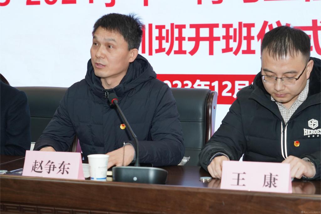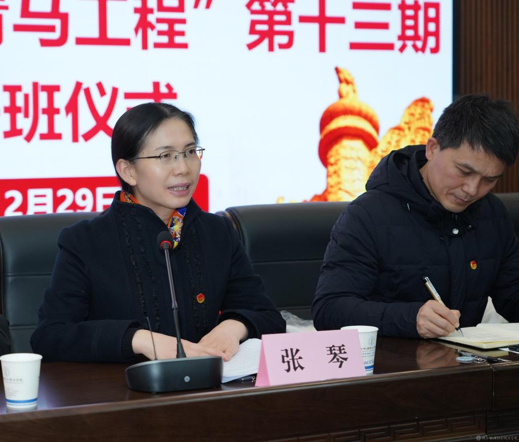 2023年12月29日下午,我校在蟠龙校区博学楼111会议室召开今年会团校成立暨2023-2024学年“青马工程”第十三期培训班开班仪式,宝福路校区在汽车机电大楼4楼视频会议室同步进行。党委副书记张琴,党委委员、院长助理赵争东,马克思主义学院负责人王康,各二级学院团总支书记、副书记,第十三期青马班全体成员、学生干部参加开班仪式。仪式由团委书记王枢主持。