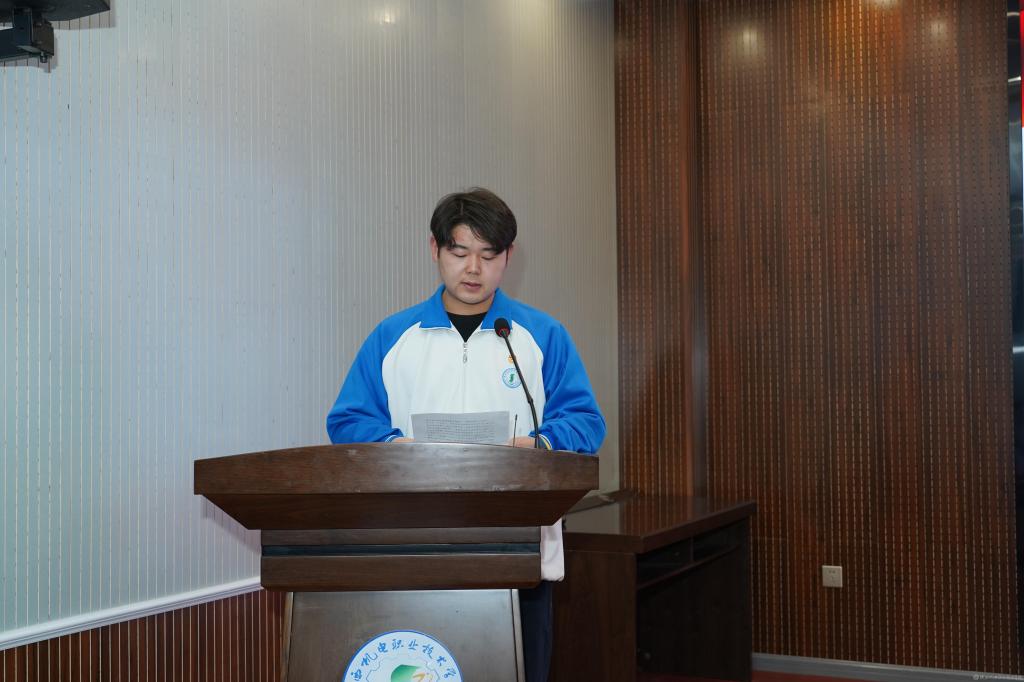 第十三期青马学员代表、校学生会执行主席高煜翔同学作为学员代表发言,他号召全体学员要勇于创新、追求新知、勇于担当;要学出过硬本领、坚定信念;要做到心中有国、肩上有担、腹中有墨、胸中有识,努力成长为一名政治合格、信念坚定、行动有力的青年马克思主义者。