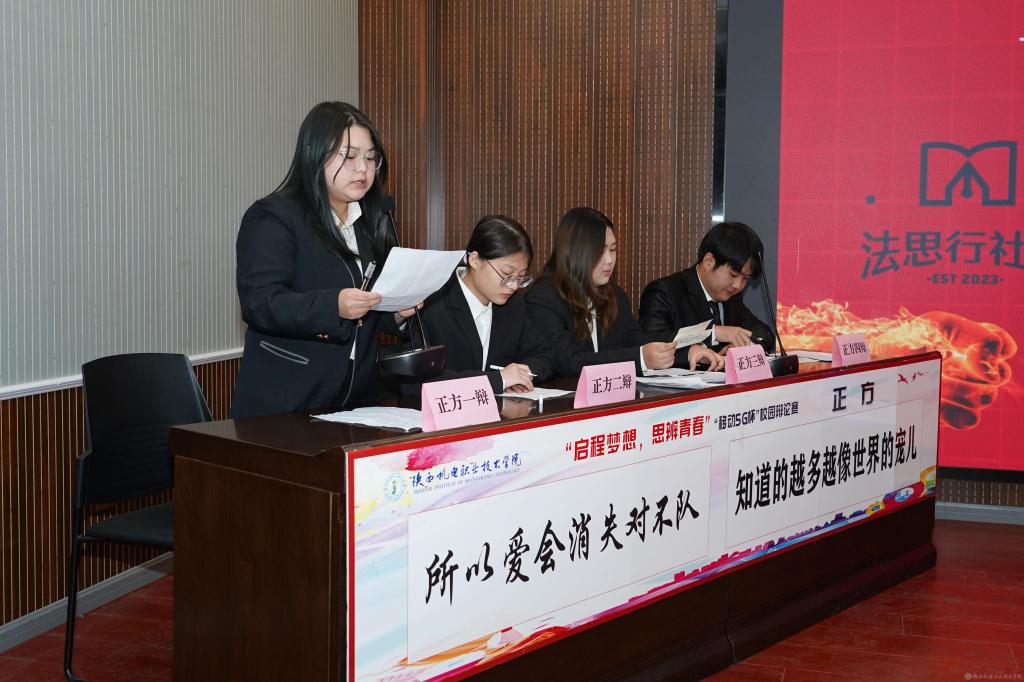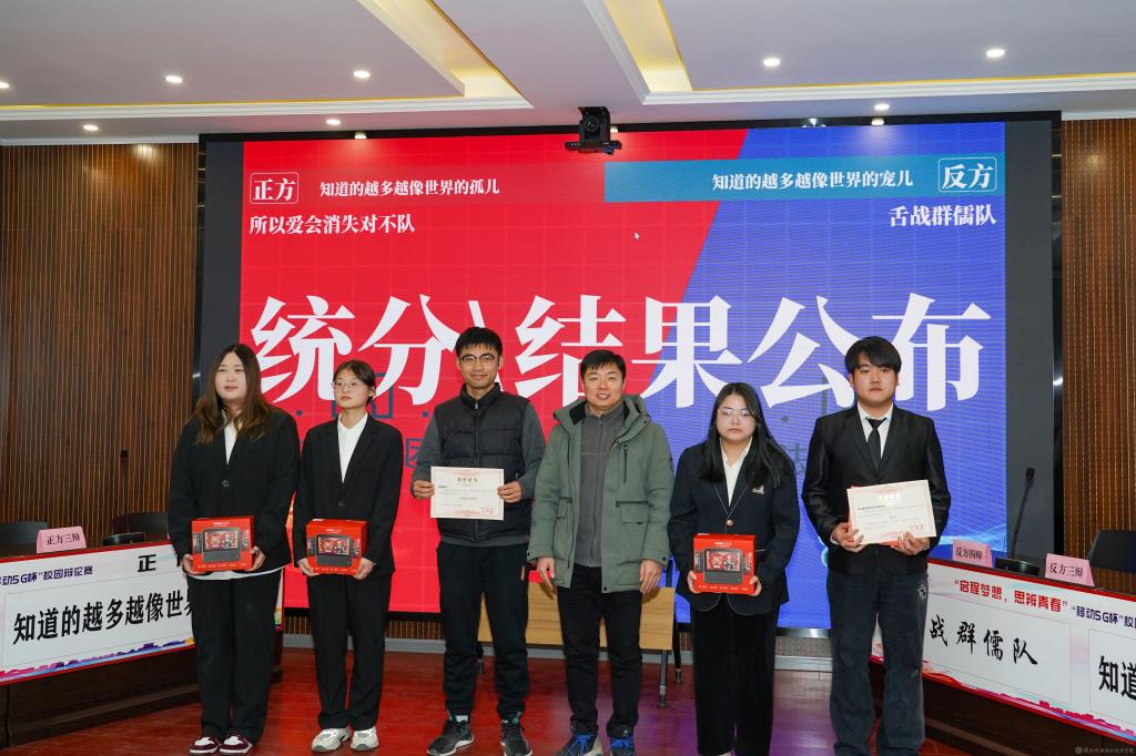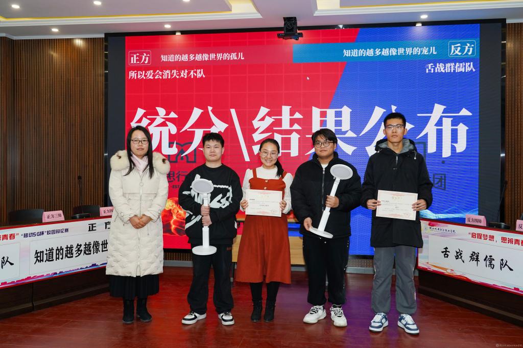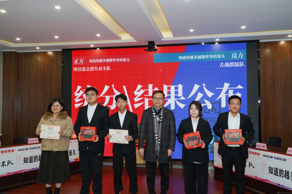 2023年12月28日,今年会2023年法治宣传系列活动暨启程梦想·思辨青春“移动5G杯”校园辩论赛进行了冠军争夺赛,并举行了颁奖仪式。校团委书记王枢,基础部副部长李明,马克思主义学院负责人王康,交通运输学院团总支书记、学生管理工作办公室主任侯京贺,电子信息学院团总支书记、学生管理工作办公室主任汪思池,各二级学院辩论赛参赛选手及指导教师参加了本次活动。活动由马克思主义学院教师王乐琴主持。