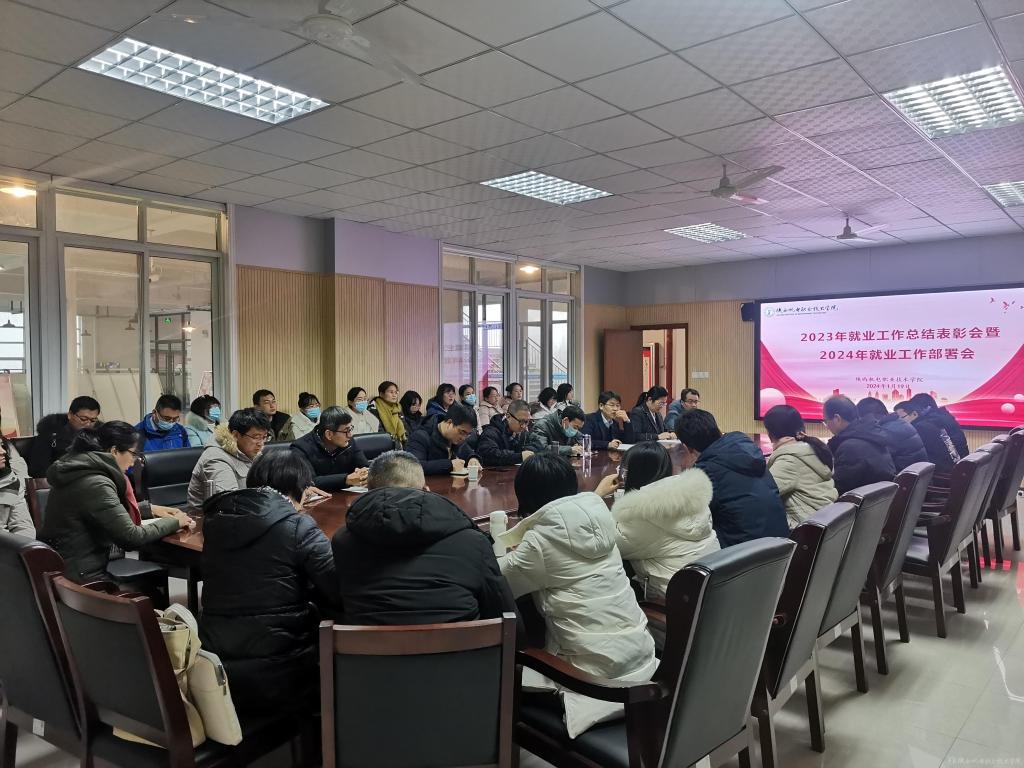 2024年1月19日上午,学校2023年就业工作总结表彰大会暨2024年就业工作部署会议在蟠龙校区图书馆2楼会议室举行。党委书记伊逊智,党委副书记张琴,招生就业处处长朱云洁、副处长田正本,各二级学院党支部书记、院长、学工办主任、2023届、2024届毕业班辅导员参加会议,会议由党委副书记张琴主持。