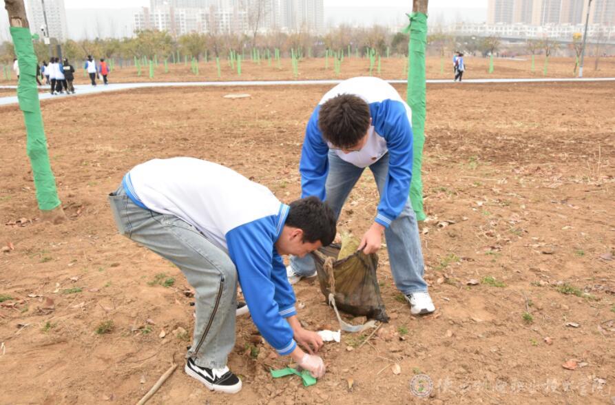 启动仪式后,我校青年志愿者开展环境卫生整治活动。志愿者们从渭河沿岸坡道散开,分工明确,相互配合。一部分志愿者手持垃圾袋、垃圾钳等清理工具,对草地上的塑料袋、烟头、果皮、瓶子等垃圾进行逐一清理;一部分志愿者负责清理拾捡河道边残留的碎屑。