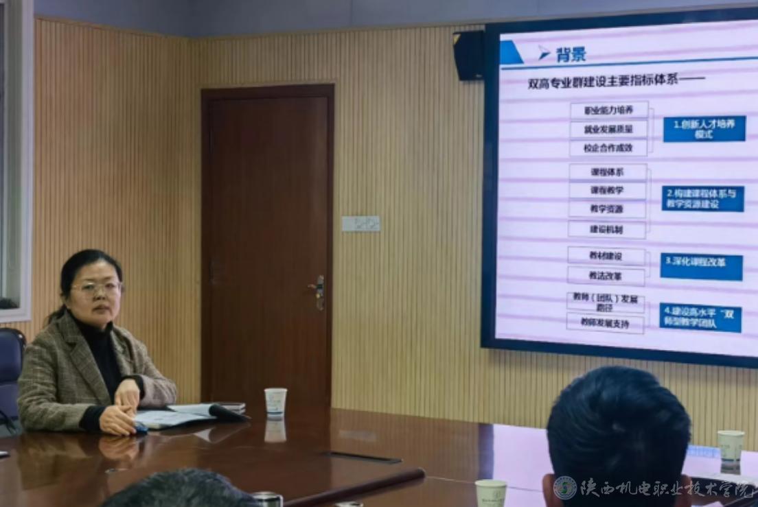 教务处处长白娟娟从建设基础、建设思路与目标、建设任务、经费预算、预期成效、保障措施等六个方面对我校“双高计划”建设思路及建设任务安排进行汇报,对存在的问题进行梳理分析,并提出了相应的解决措施。智能制造学院副院长高白川介绍了“双高”专业群建设2024年年度任务,主要预期成果及目标值及后续工作思路。各组绩效指标完成进度、标志性成果取得情况、存在的问题以及下一步工作安排。