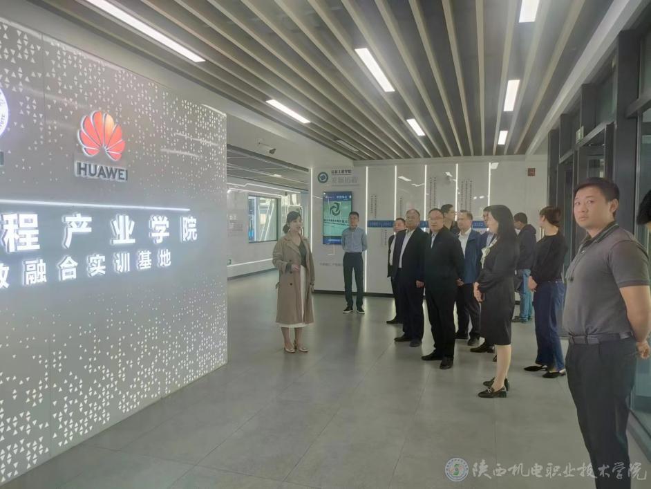 在陕西工业职业技术学院领导陪同下,向纪明一行现场考察了陕西工业职业技术学院经开校区华为产教融合实训基地、图文信息中心大楼等场所,实地了解项目建设基本情况。