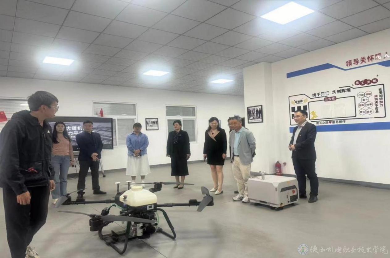 研讨会后,在陈红梅、王康陪同下,与会专家、领导一行先后参观了学校风标智造产业学院、无人机产业学院、宝鸡擀面皮产业学院,感悟我校“园中有校 校中有企 校企合作 产教融合”的独特办学优势,并就大思政课建设进行了交流。
