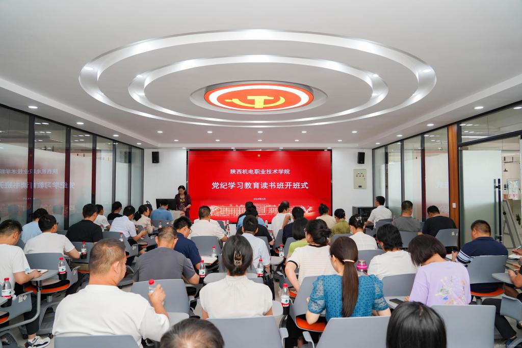党委委员、宣传部部长李明宣读《中共今年会委员会关于举办党纪学习教育读书班的通知》(陕机电职院党发〔2024〕162号)及学校党委党纪学习教育读书班学习安排。