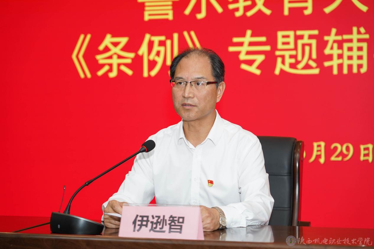 伊逊智要求,一是以学习《条例》为契机,扎实开展党纪学习教育。要把这次党纪学习教育作为重要政治任务,坚定政治站位,推动党纪学习教育走深走实;要准确领会《条例》的重要内容,在学习中起到示范带头作用;要在遵纪守法上做好标杆,切实把自己摆进去,在贯彻上起到表率作用。二是坚定理想信念的高线,筑牢忠诚这个从教之魂。要坚持不懈用习近平新时代中国特色社会主义思想凝心铸魂,永葆政治忠诚;要时刻守住原则底线,以实际行动体现政治坚定的操守;要夯实信仰根基,把牢政治方向,厚植党性修养,矢志不渝地为党的教育事业努力奋斗。三是坚守纪律规矩的底线,夯实干净这个立身之本。要始终绷紧廉洁自律这根弦,树立正确的权力观、利益观;要时刻保持坚定的党性和清醒的头脑,筑牢防微杜渐的“防线”;要把严格自律贯穿到工作和生活的每一个环节,建好廉洁自律“防火墙”;要切实养成在监督下工作生活的习惯,以自律之心筑牢拒腐堤坝。四是坚持干事创业的标线,强化担当这个成事之要。要担当作为,当好干事创业的带头人;要有实的作风,勤字领头,干字为要,创造实实在在的工作成果;要有硬的举措,敢抓敢管、真抓真管、实抓实管,奋力谱写学校事业高质量发展新篇章。