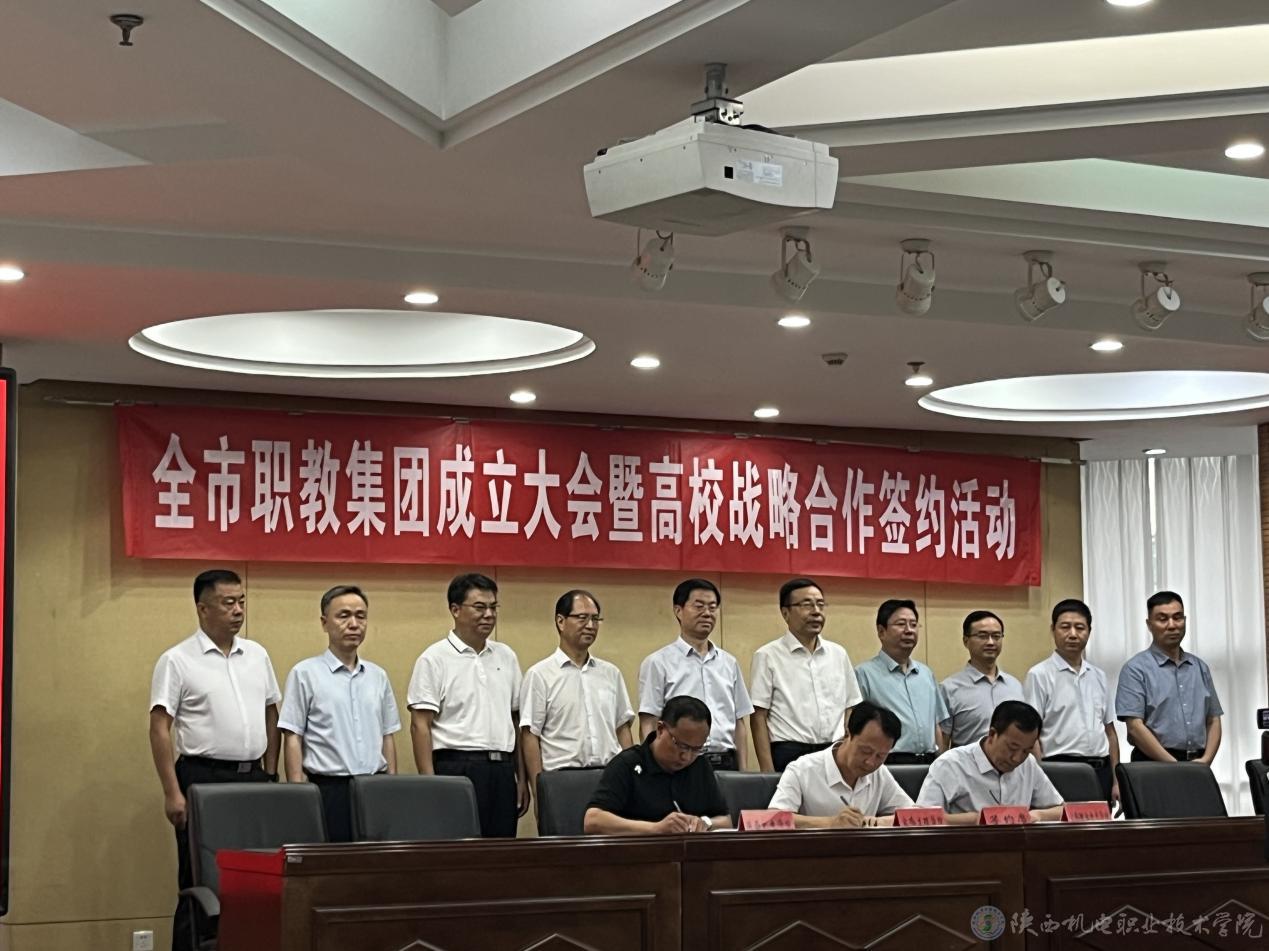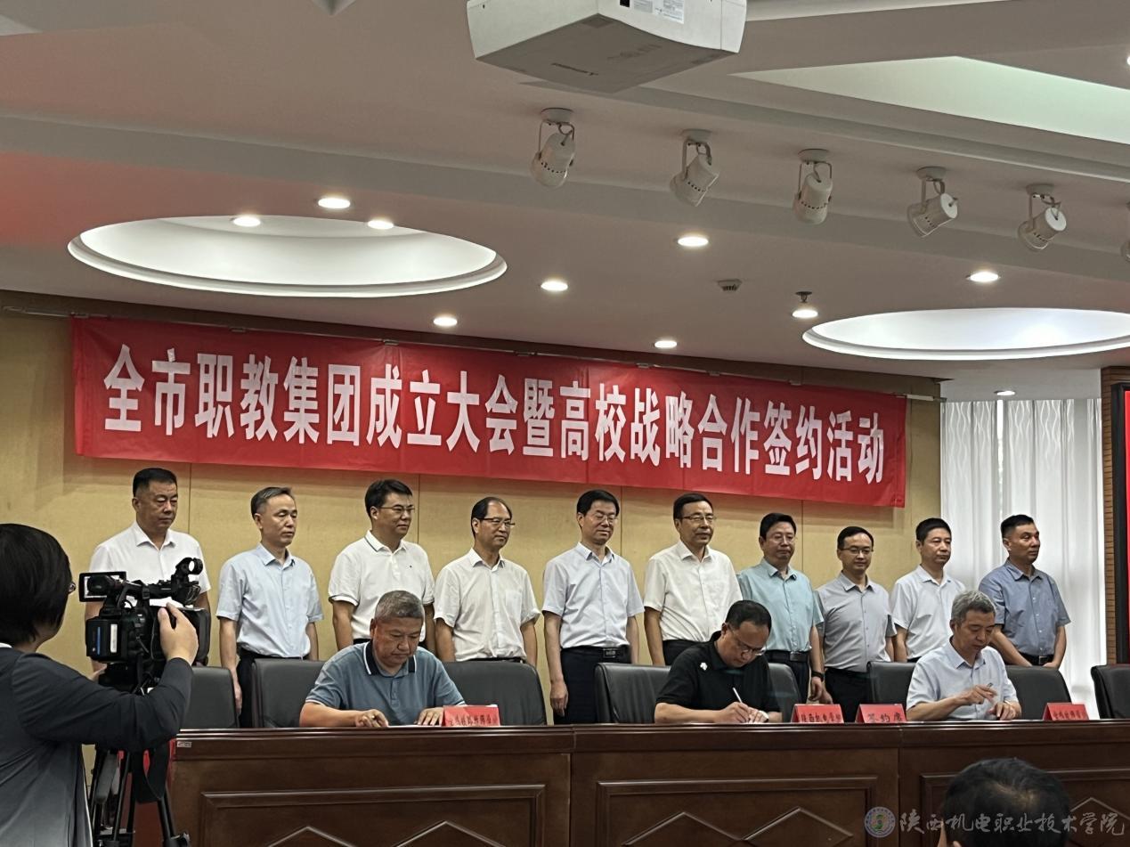 向纪明与宝鸡技师学院、宝鸡铁路技师学院2所院校负责人共同签订宝鸡机电职业教育集团战略合作协议。