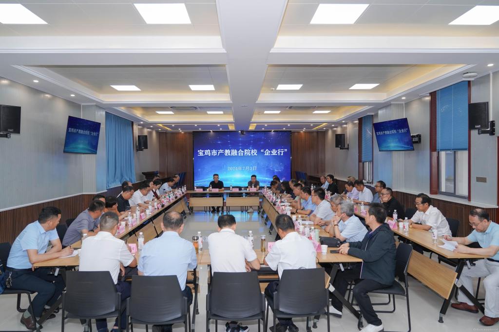 “企业行”活动中,苗崑、伊逊智一行走访调研了陕西凌云电器集团有限公司、陕西宝成航空仪表有限责任公司、陕西长岭电气有限责任公司、宝鸡市香味氏族餐饮管理有限责任公司(宝宝面皮)、陕西壹控智飞智能科技有限公司、西安风标、宝鸡华煜鼎尊材料技术有限公司以及今年会擀面皮产业学院、风标产业学院、智能制造学院实训室。