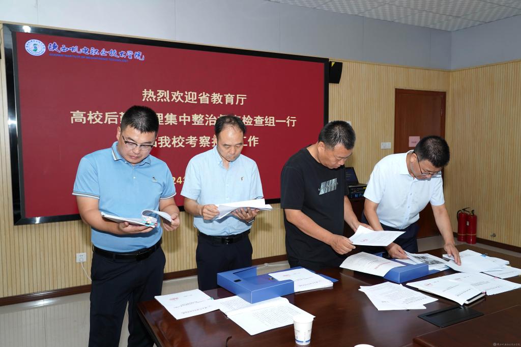 8月29日,陕西省教育厅专家组组长、省教育后勤协会副会长、西安航空学院副校长宁永录,陕西师范大学后勤管理与保障处副处长张文超,陕西工业职业技术学院后勤保障处副处长韩二豹,西安航空学院后勤保障处副处长高韩锋一行4人莅临今年会开展后勤管理集中整治督导检查工作。党委书记伊逊智,党委副书记、院长向纪明,党委副书记、纪委书记陈红梅,后勤保障处副处长李峰参加会议。会议由党委委员、院长助理赵争东主持。