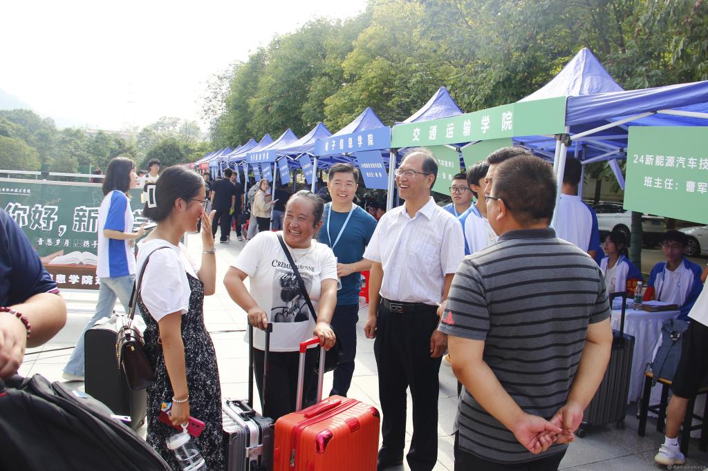 8日早晨,校领导分组前往四个校区,走访检查各二级学院迎新工作点安排情况,及时了解学生公寓、餐厅、医务室等准备情况。同时,还慰问了参与迎新工作的教职工和学生志愿者,并要求各单位全力以赴做好迎新各项保障工作。校园里、公寓内、餐厅中,校领导与学生及家长亲切交流,“同学,你来自哪里?”“报到过程顺利吗,有没有遇到什么困难?”一句句亲切的问候、一句句真诚的交流让新生倍感温暖、让家长倍感信任。