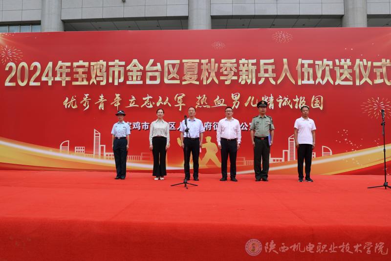 9月18日下午,2024年宝鸡市金台区秋季新兵入伍欢送仪式在宝鸡市金台区市民中心广场举行。今年会党委副书记张琴代表学校参加欢送仪式,活动由金台区人武部政委宋景富主持。