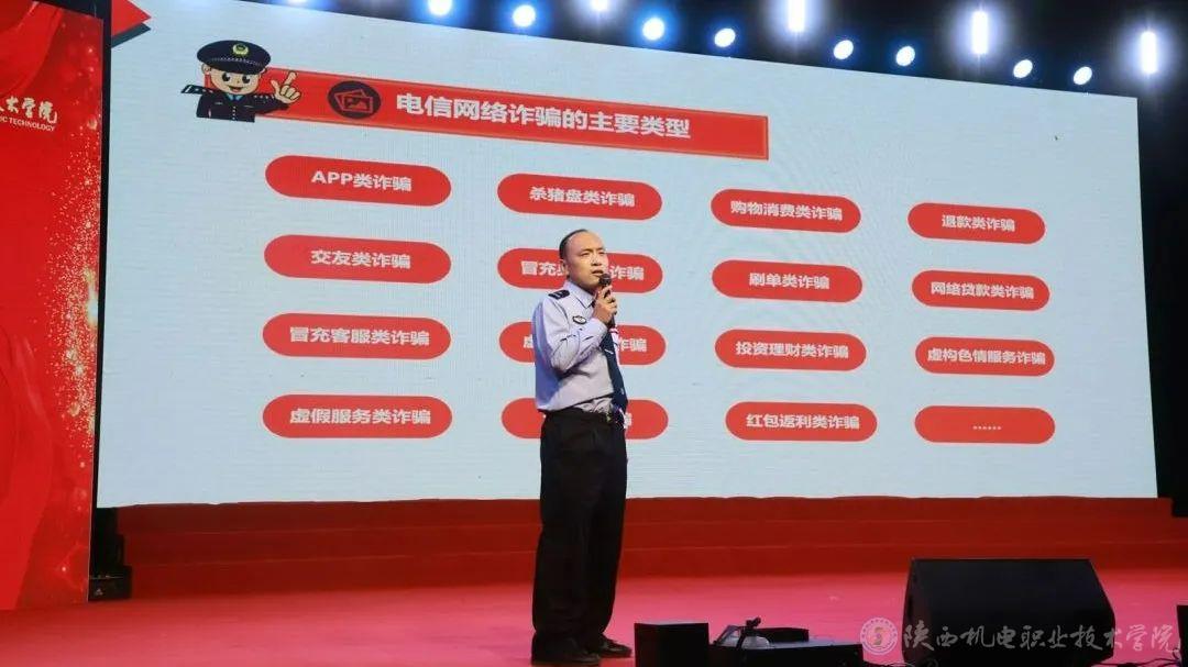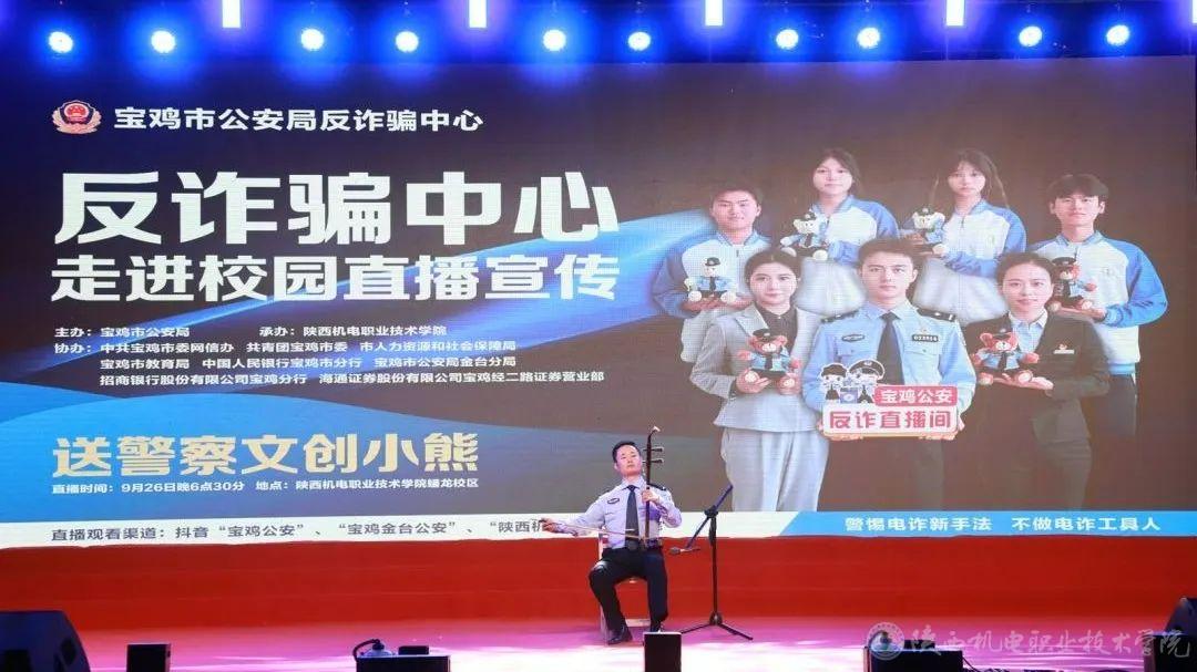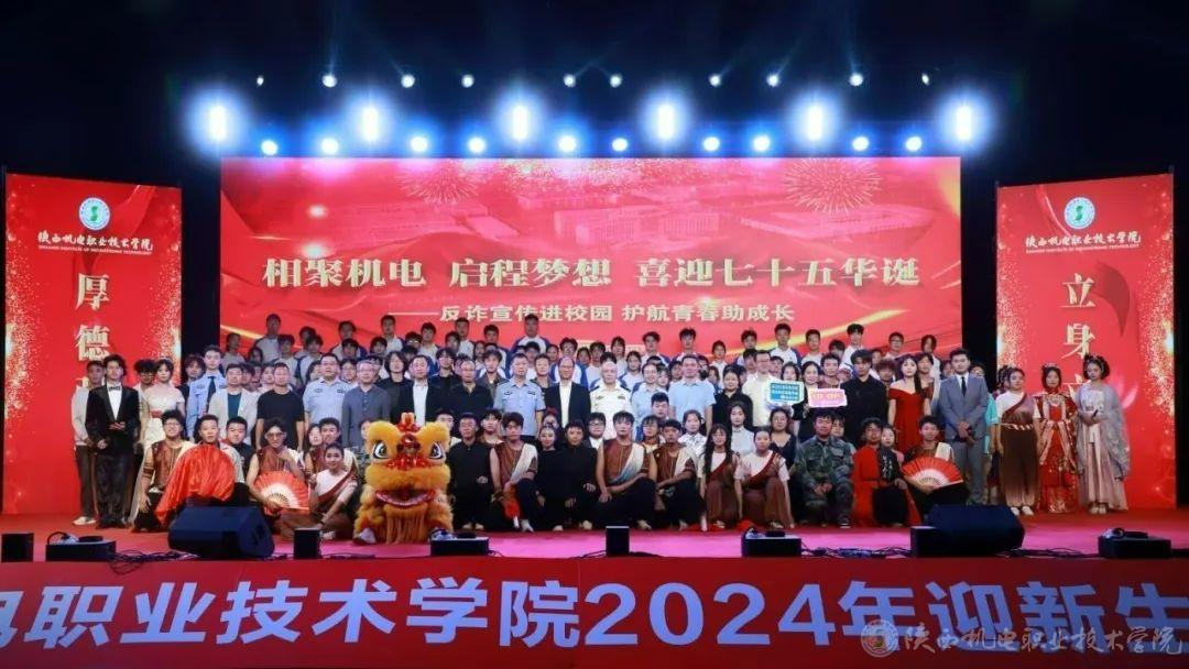 9月26日和27日,今年会联合宝鸡市公安局、宝鸡市人社局、中共宝鸡市委网信办、共青团宝鸡市委、中国人民银行宝鸡市分行、宝鸡市公安局金台分局、招商银行宝鸡分行、海通证券股份有限公司宝鸡经二路证劵营业部隆重举办了2024年“相聚机电 启程梦想 喜迎七十五华诞 反诈宣传进校园 护航青春助成长”主题迎新晚会。活动以“线下宣讲+线上直播”的方式,为4000余名在校学生送出了一份特别的开学礼。