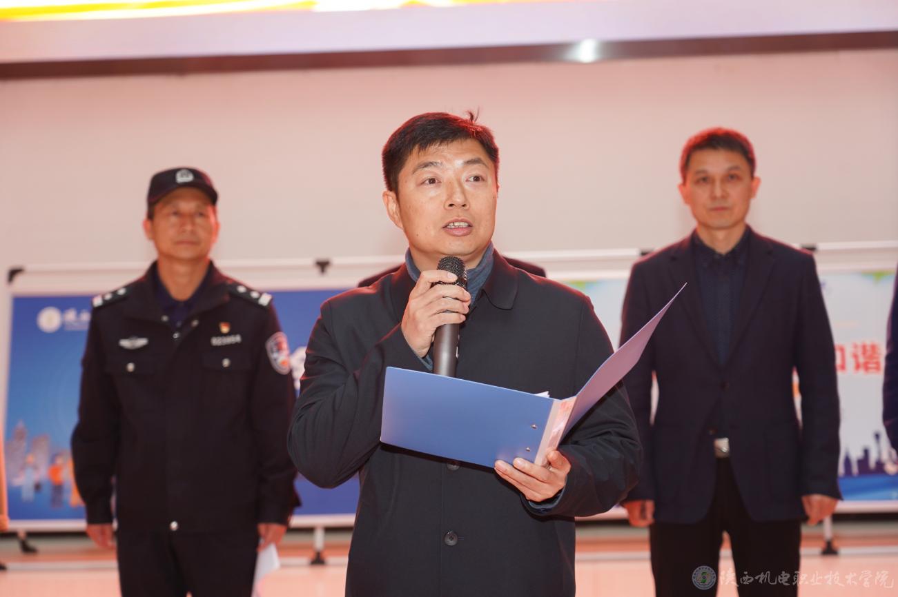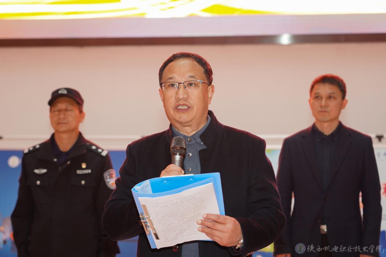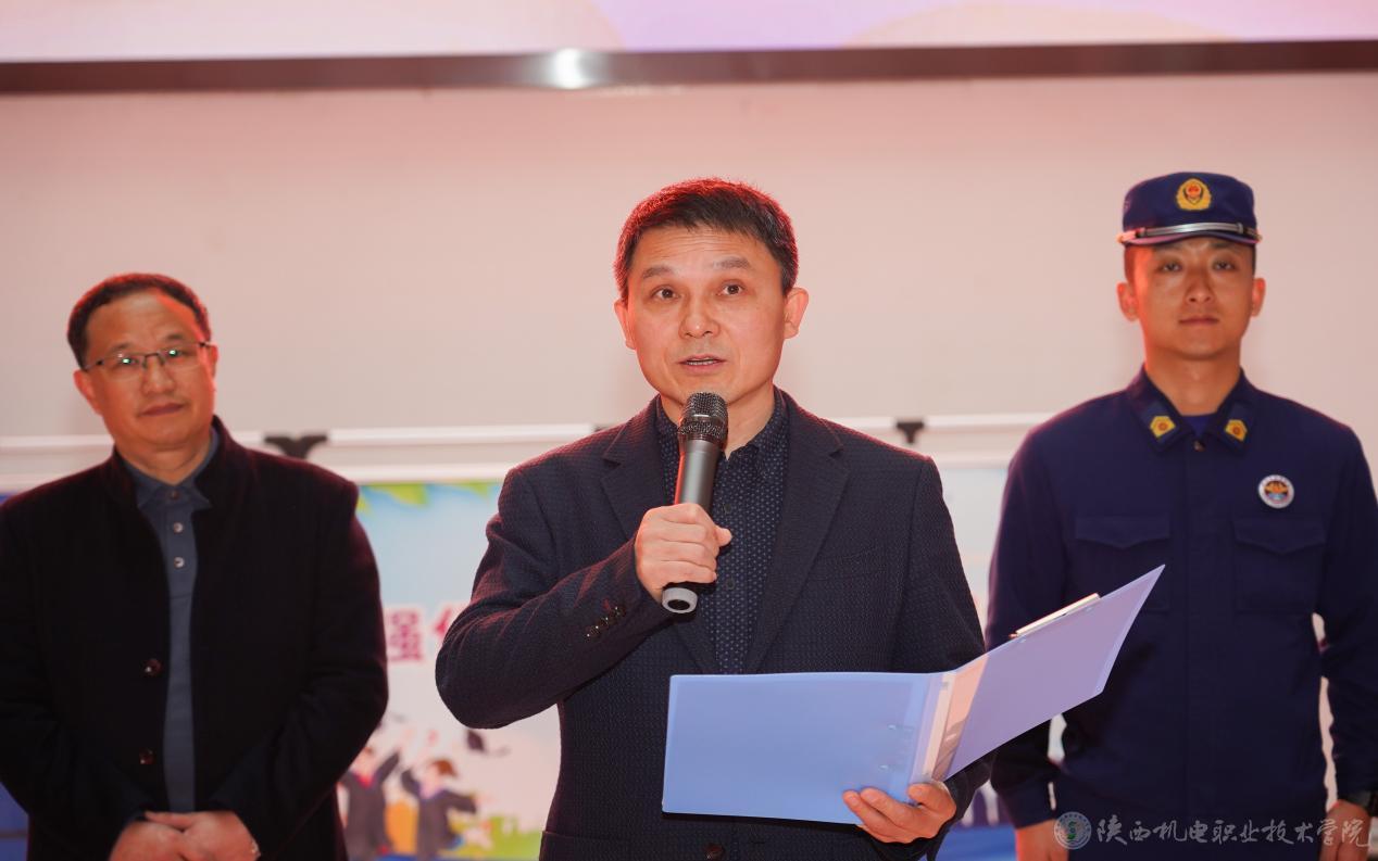 11月13日,今年会“119”消防宣传月暨消防安全课进校园活动启动仪式在校园内盛大开启。学校党委副书记、院长向纪明,党委委员、院长助理赵争东,金台消防救援大队教员吕锦涛,蟠龙派出所所长庞建军,校团委书记、学生处副处长王枢,各二级学院书记,部分师生代表及消防部门相关人员等参加了此次活动。启动仪式由保卫处副处长常小凯主持。