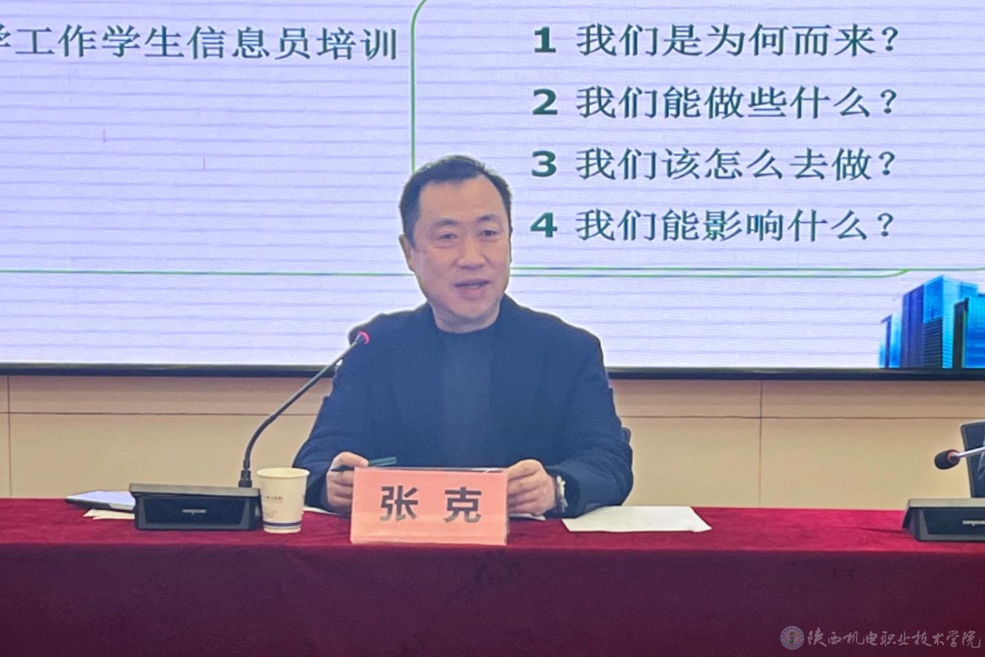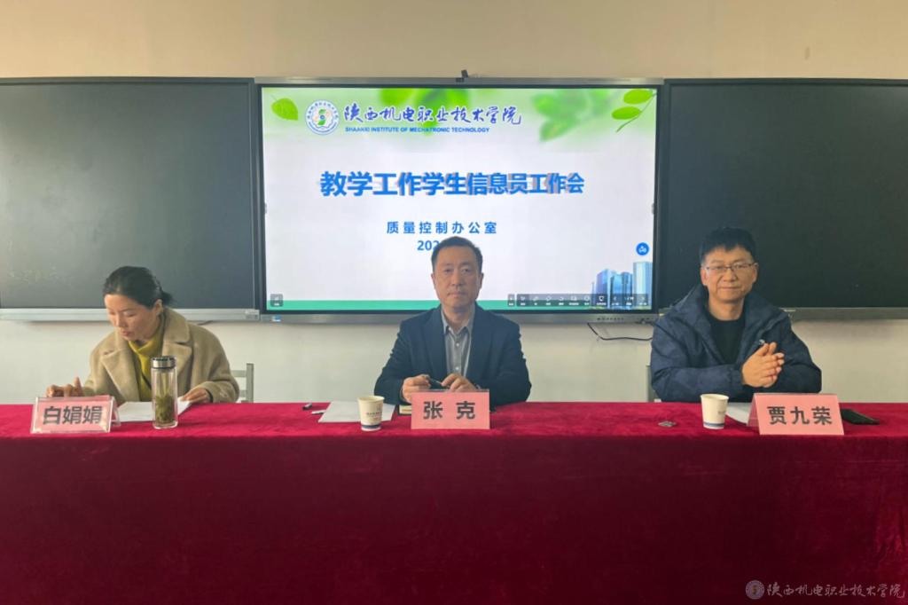 为进一步提升学校教育教学质量,加强内部质量保证体系建设,引导和培养学生信息员的工作能力和工作水平。今年会于11月19日和20日下午分别在宝福路校区和蟠龙校区召开了2024年度教学工作信息员会议。学校党委委员、副院长张克,教务处处长白娟娟,校团委书记、学生处副处长王枢,质量控制办公室主任贾九荣,以及200多名信息员参加了会议。会议由质量控制办公室教师宁静主持。