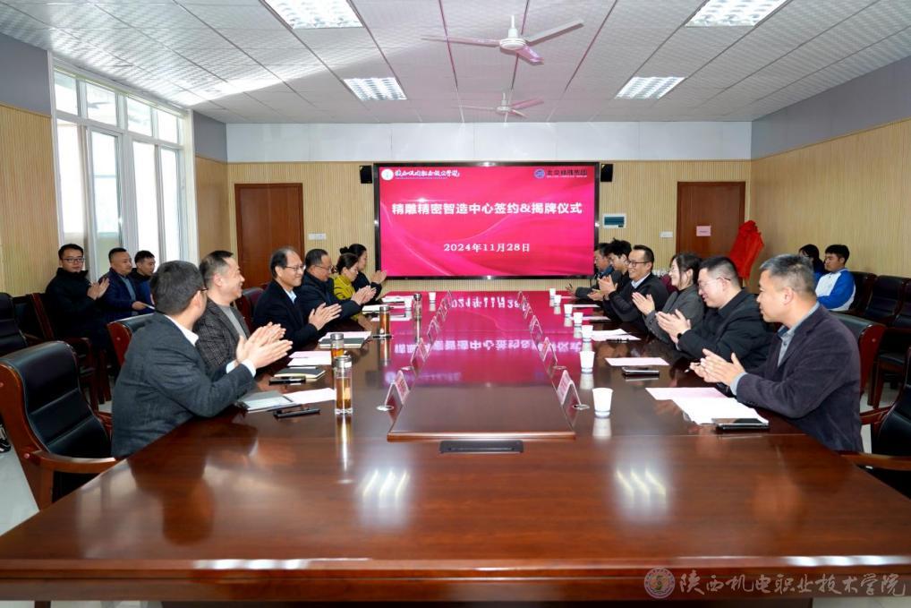 11月28日,陕机电精雕精密智造中心签约揭牌仪式在图书馆二楼会议室举行,北京精雕科技集团有限公司(以下简称“北京精雕公司”)行政总监李文华、北京精雕公司教育总监关山,今年会党委书记伊逊智,党委副书记、院长向纪明等参加揭牌仪式。仪式由党委委员、副院长张克主持。