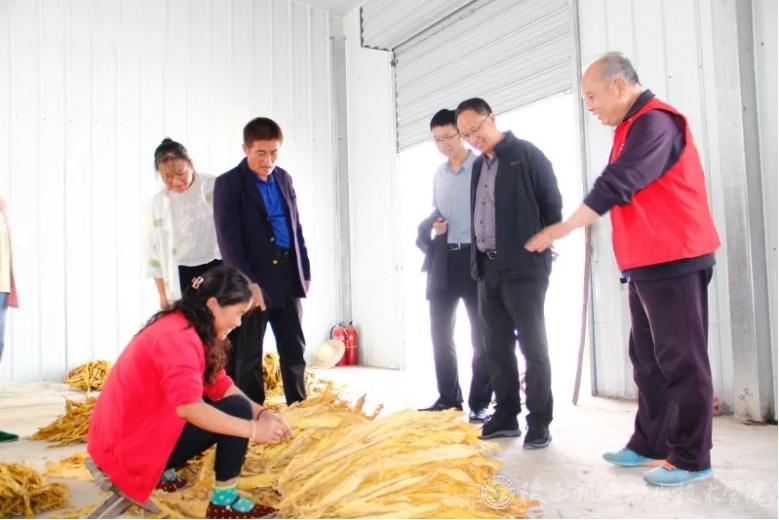 在烤烟加工厂查看乡村振兴、产业发展情况
