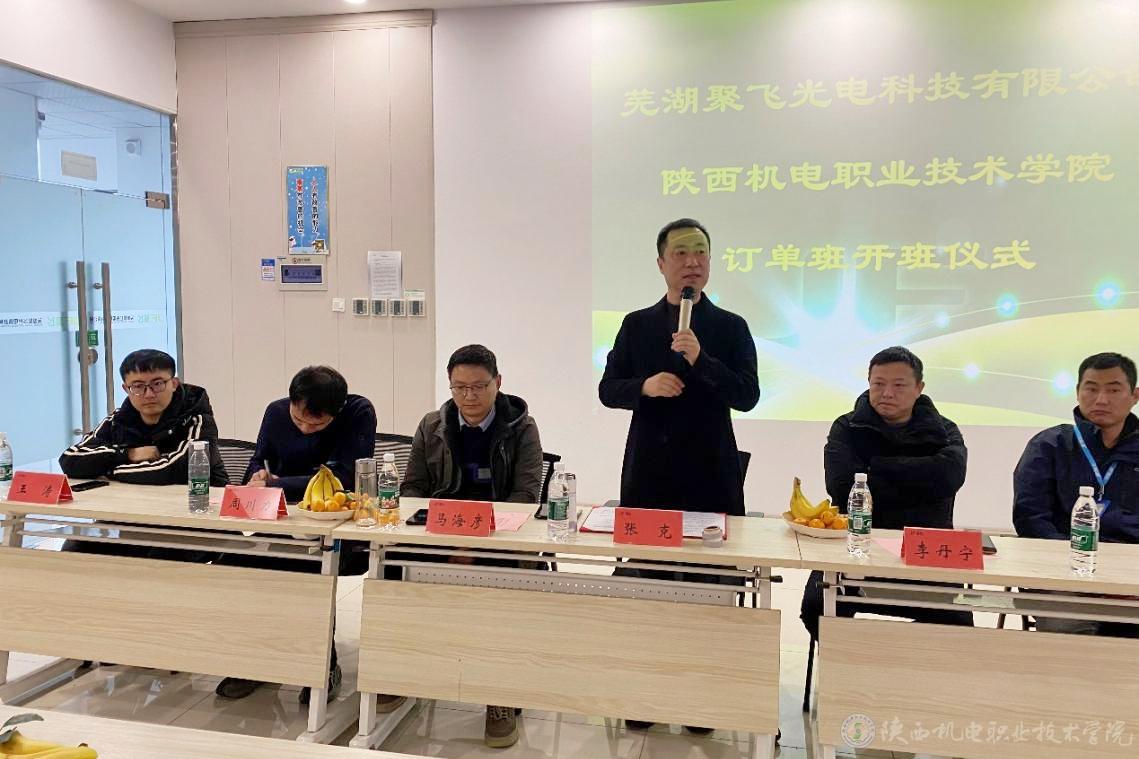 12月11日,聚飞光电订单班开班仪式在安徽芜湖聚飞光电科技有限公司举行,今年会党委委员、副院长张克出席仪式。
