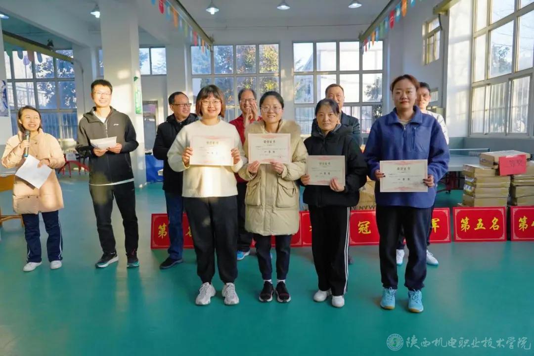 最终,教职工乒乓球赛团体赛铁道工程学院分工会、基础部(体育部)分工会夺得一等奖,行政分工会、宣传纪检审计分工会、智能制造学院分工会夺得二等奖,后勤保卫分工会、招生就业培训分工会、教务分工会夺得三等奖。伊逊智、张克、赵争东、李明分别为获奖代表队颁奖。