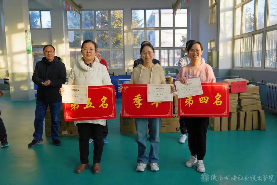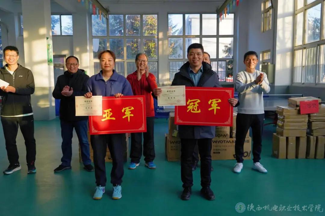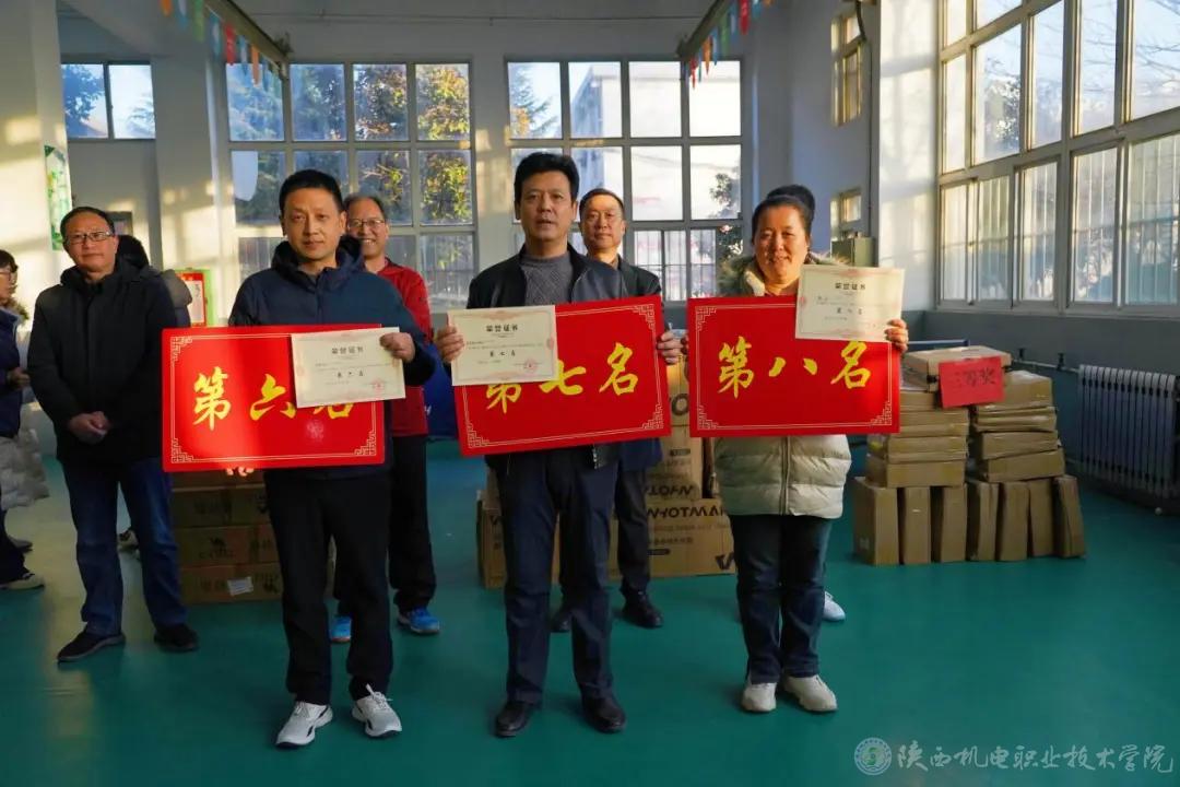 教职工乒乓球赛个人赛获得男子一等奖的是王文忠、陈峰、蔡鹏飞、张小辉;获得男子二等奖的是伊逊智、张泽宁、赵争东、贾九荣;获得男子三等奖的是周东、李英儒、张喆、康小斌、杨科、徐建、何京浩、张晓伟。
